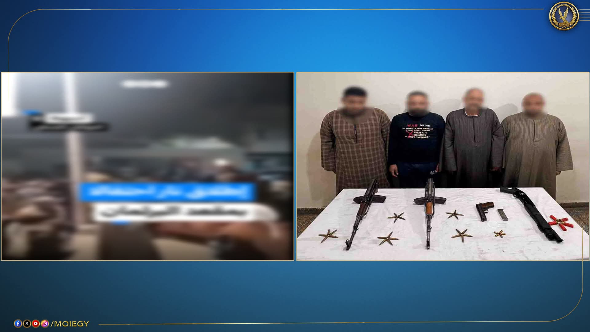 وبحوزتهم (2 بندقية آلية – بندقية خرطوش – طبنجة