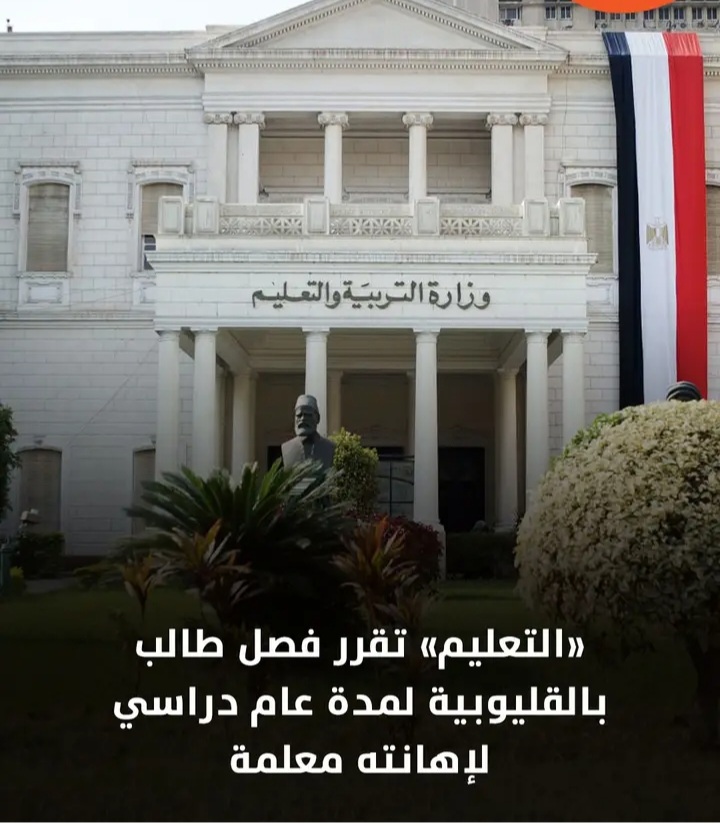 أكد مصدر مسؤول بوزارة التربية والتعليم والتعليم الفني، أن مديرية التربية والتعليم بمحافظة القليوبية، قررت فصل طالب لمدة عام دراسي بعد تداول فيديو وهو يصرخ في وجه معلمة ويهينها في أثناء دخوله لأداء الامتحان.