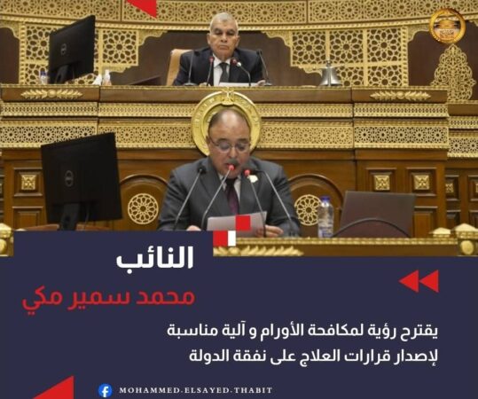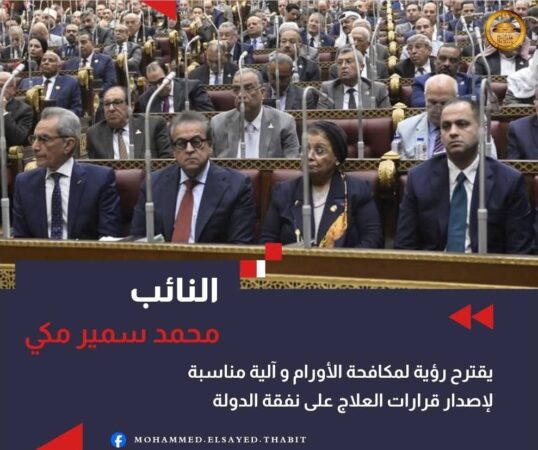 ونوه النائب محمد مكي إلى ان مشروع العلاج على نفقة