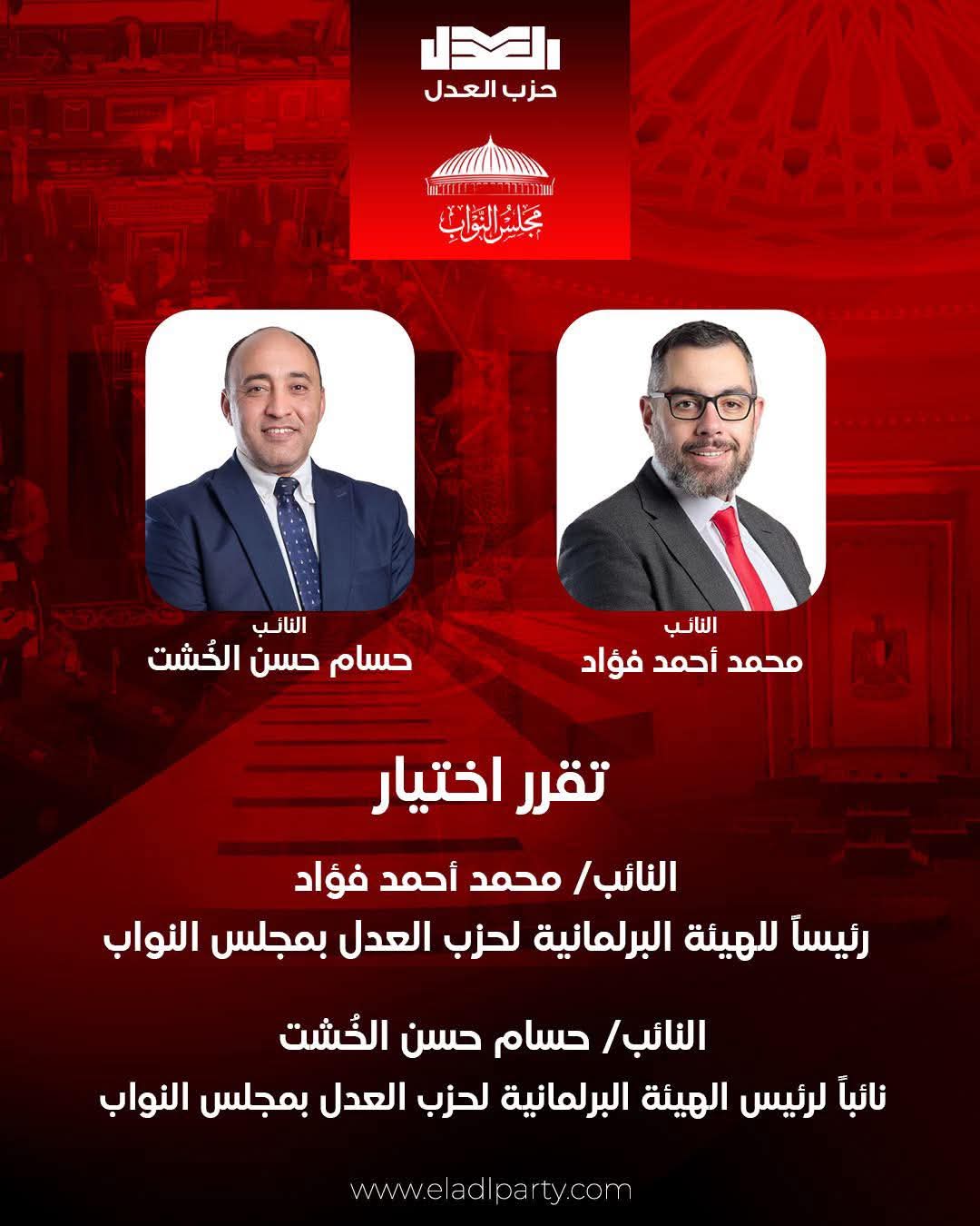 أخطر حزب العدل، برئاسة النائب “عبد المنعم إمام”، رئيس مجلس النواب بتشكيل الهيئة البرلمانية للحزب خلال دور الانعقاد الأول من الفصل التشريعي الثالث، وذلك وفقاً لأحكام المادة (105) من اللائحة الداخلية لمجلس النواب.