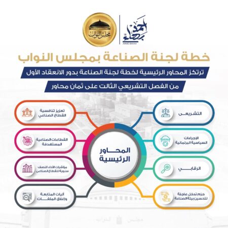 وقال : تطلق لجنة الصناعة بمجلس النواب خطة عملها لدور الانعقاد الأول من الفصل التشريعي الثالث، وهي خطة “مركزة وقابلة للتنفيذ” تستهدف التدخل السريع لحل اختناقات القطاع الصناعي.