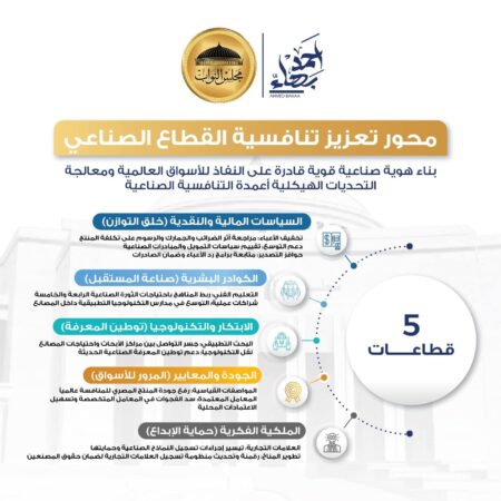 وقال : في لجنة الصناعة بمجلس النواب، نؤمن أن المنتج المصري يمتلك كافة المقومات للوصول للعالمية. لذا، يركز هذا المحور في خطتنا على رفع “تنافسية القطاع الصناعي” من خلال: