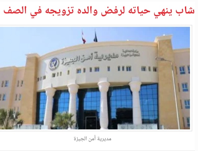 تلقى رئيس مباحث مركز شرطة الصف، بلاغا يفيد العثور على جثة شاب داخل مسكنه، انتقلت قوة أمنية إلى مكان البلاغ، وبإجراء التحريات تبين أن شابا يبلغ من العمر 18 عاما، أنهى حياته، بتناول مادة سامة لرفض والده تزويجه لصغر عمره.