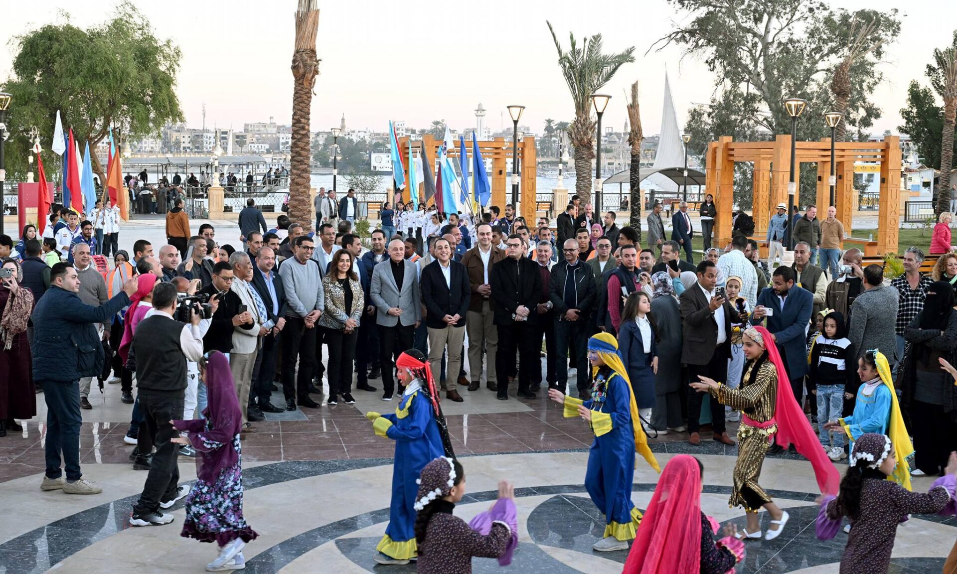 مكشوف، ونافورة مضيئة، وجراج، وبرجولات، ومقاعد للزائرين، ومسطحات خضراء، إلى جانب تطوير ورفع كفاءة المراسي